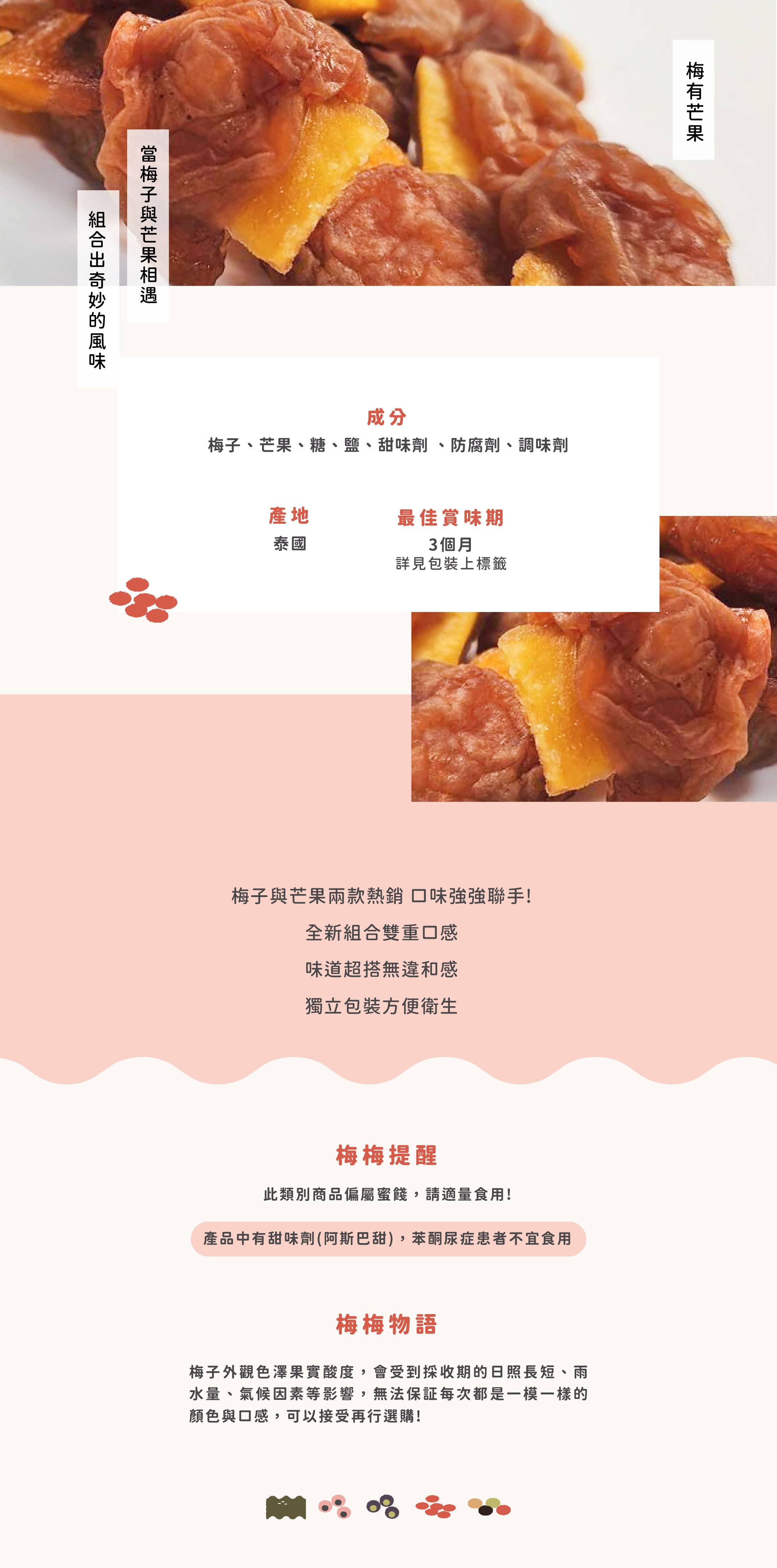 成 分 : 梅子、芒果、糖、鹽、甜味劑、防腐劑、調味劑